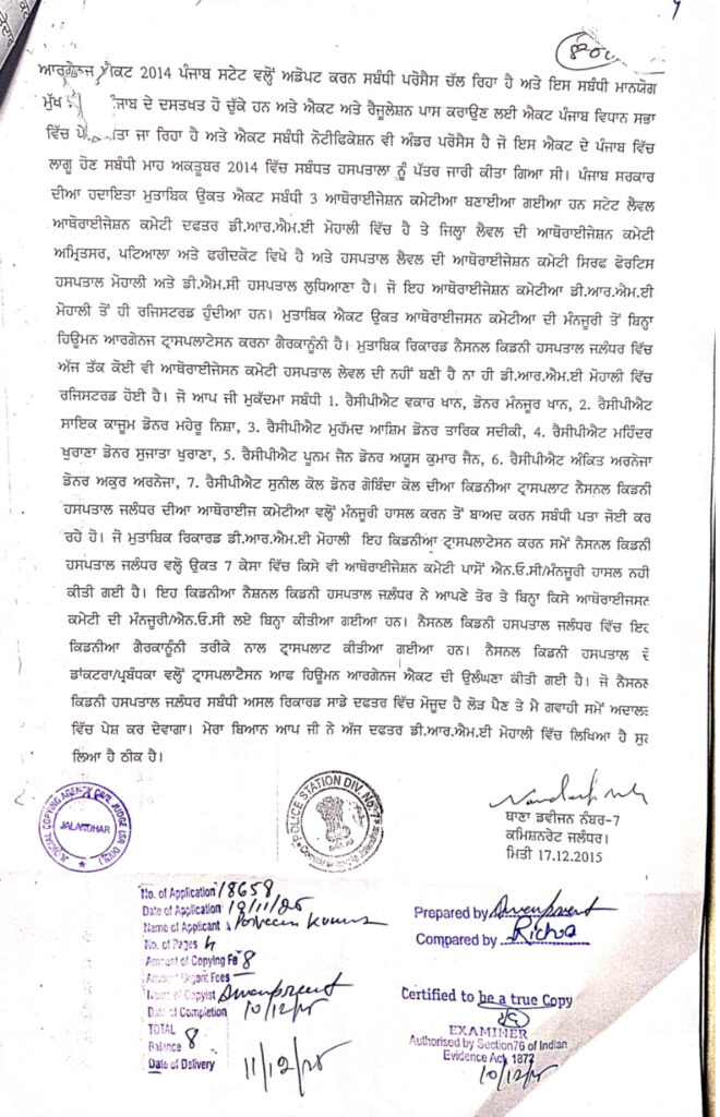 2015 में किडनी रैकेट के खुलने पर सर्वोदय अस्पताल के डॉक्टर राजेश अग्रवाल, संजय मित्तल, सुमन मित्तल समेत कई अन्य अन्य डॉक्टर/ प्रबंधक पर अवैध रूप से किडनी ट्रांसप्लांट की कई धाराओं के तहत केस दर्ज हुआ था। जांच में पता चला था कि बिना मंजूरी लोगों की किडनियां निकालीं गईं और ट्रांसप्लांट की गईं। पंजाब सरकार के DRME विभाग के सुपरिंटेंडेंट सौदागर चंद ने लिखित बयान भी दिया था कि कौन- कौन दोषी है और जब भी जरुरत होगी वो कोर्ट आकर सब कुछ बताने को तैयार है। लेकिन सिस्टम की लापरवाही देखिए आज 11 साल बीत जाने के बाद भी वो व्यक्ति गवाही के लिए नहीं बुलाया गया।