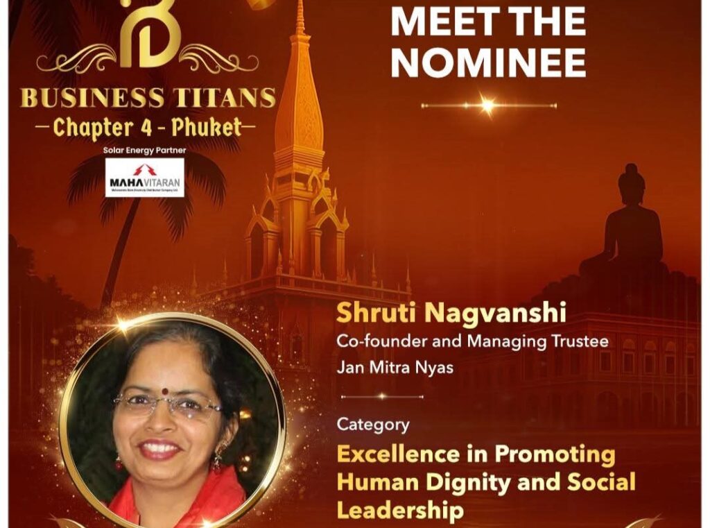 बनारस। Shruti Nagvanshi: फुकेट, थाईलैंड में आयोजित एक अंतरराष्ट्रीय समारोह में जनमित्र न्यास की सह संस्थापक श्रुति नागवंशी को “बिजनेस टाइटन्स – मानव गरिमा और सामाजिक नेतृत्व को बढ़ावा देने में उत्कृष्टता” पुरस्कार से सम्मानित किया गया।